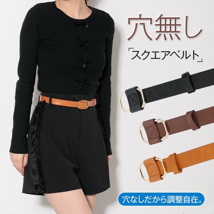 - 送料無料 ベルト レディース メンズ PU革 レザー スクエアレザーベルト 細い カジュアル ビジネス サイズ調整 ファッション シンプル ap132