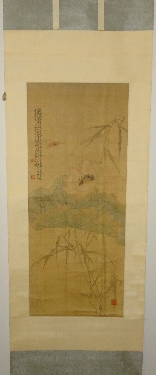 - rarebookkyoto JK012 中国 絵画藝術 姚燮・大梅山民・復翁 設色夏荷 立軸 絹本 鎮海作家 1860年頃作 名品 名人 名作