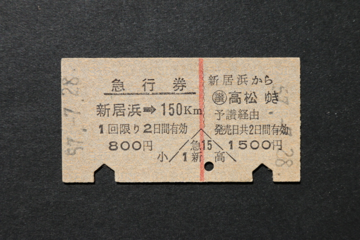 - 急行券乗車券 新居浜→150㎞800円 新居浜から高松ゆき1500円
