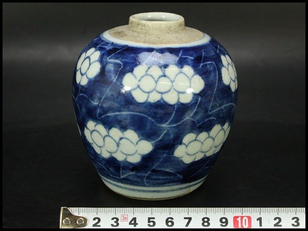 > 【銀閣】中国美術 染付 梅紋 茶入 壷 高11cm 旧家蔵出 送料無料(ZE153)