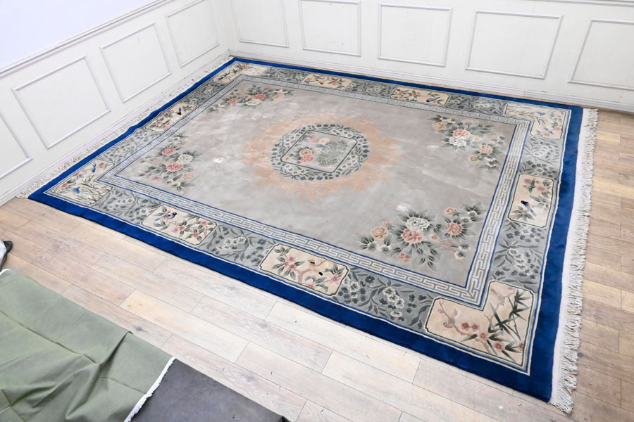 - GH21 超特大 200万円 超大判 デザイン 手織り 段通 ウール 絨毯 カーペット ジュータン センターラグ 幅431x306 厚み2cm(房含む)