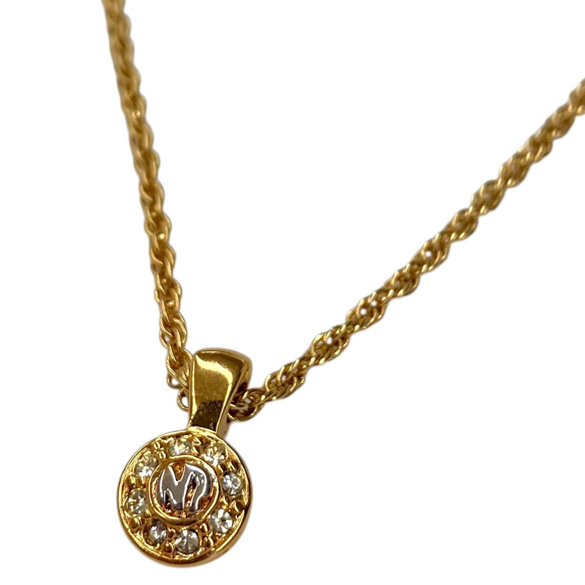 - NINA RICCI ニナリッチ NR ラインストーン ロゴ ネックレス ペンダント ゴールドカラー アクセサリー レディース