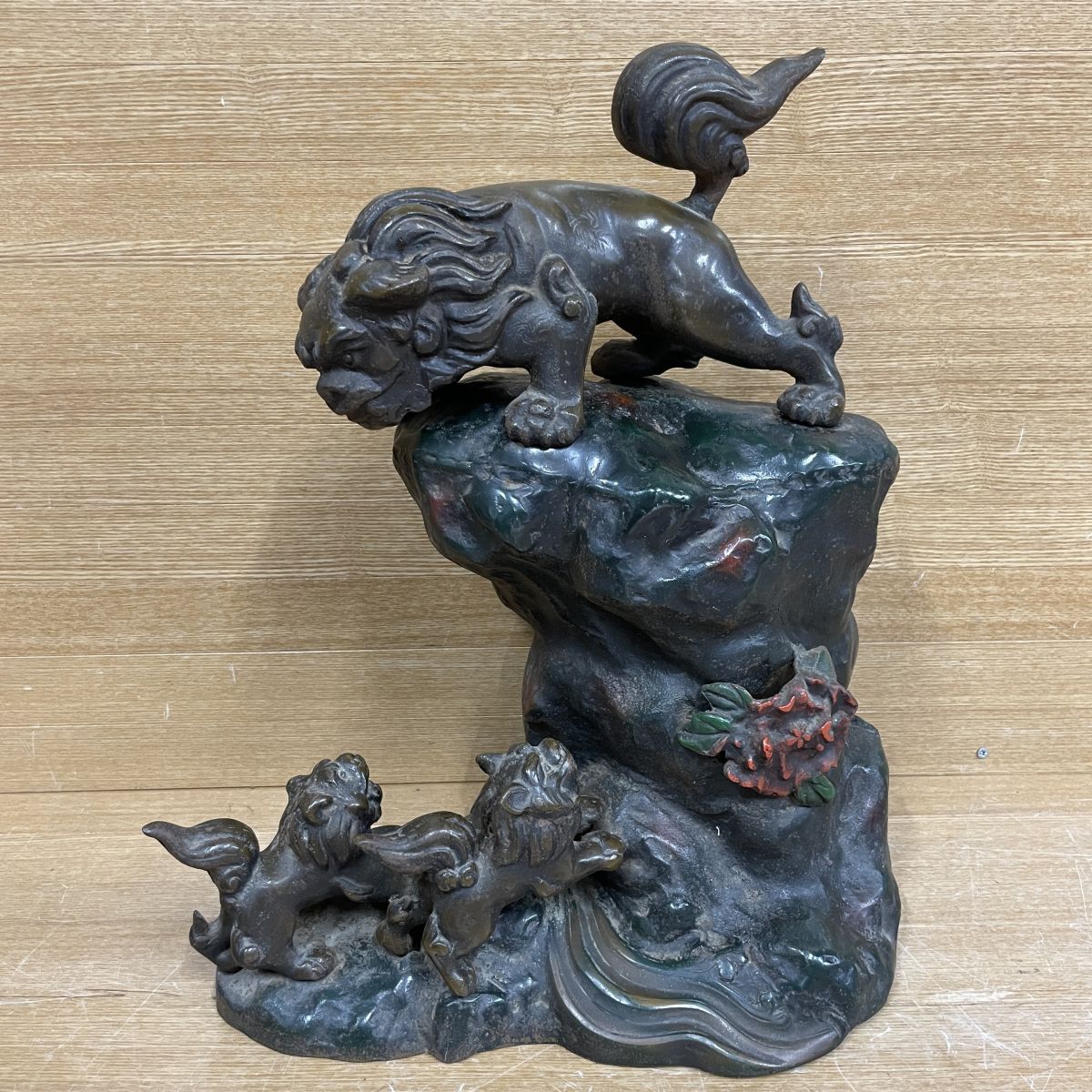 - 14W70 獅子の子落とし 置物 獅子は我が子を千尋の谷に落とす 鉄製 金属工芸 蔵出 インテリア 1000-スタート