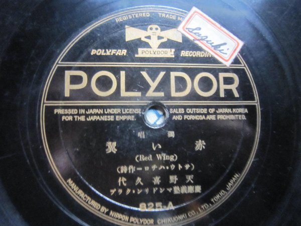 - ポリドール流行歌SP盤43★天野喜久代/赤い翼★矢追婦美子/ボレロ★SPレコード