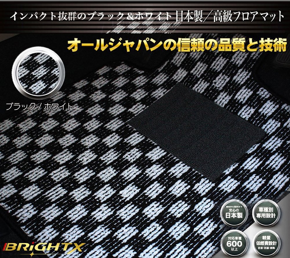 > 日本製 フロアマット 送料無料 新品 アウディ Audi R8 42BYHF 右ハンドル H19.07~H28.0 2枚SET チエック柄【ブラック×ホワイト】