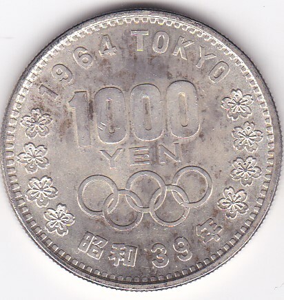 - ●●●東京オリンピック記念 1000円 銀貨 昭和39年★
