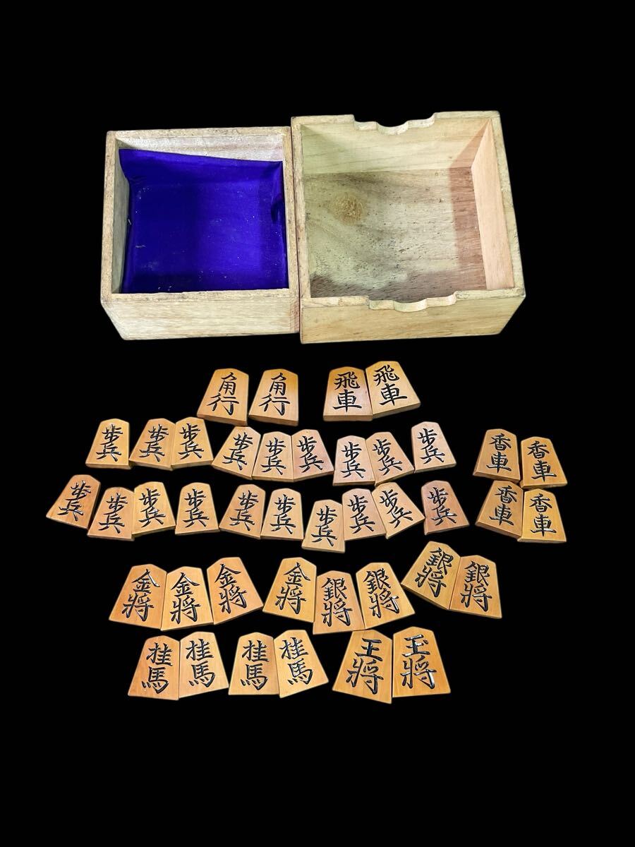 - H04/仙山作 シャム黄楊柾目彫将棋駒 錦旗 桐箱 41駒