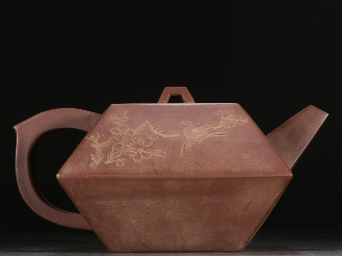 > ▽鴻▽清時代 在銘 花鳥紋茶壺 宜興紫砂 常滑 朱泥急須 煎茶道具 茶壷 時代物 中国古美術 骨董品
