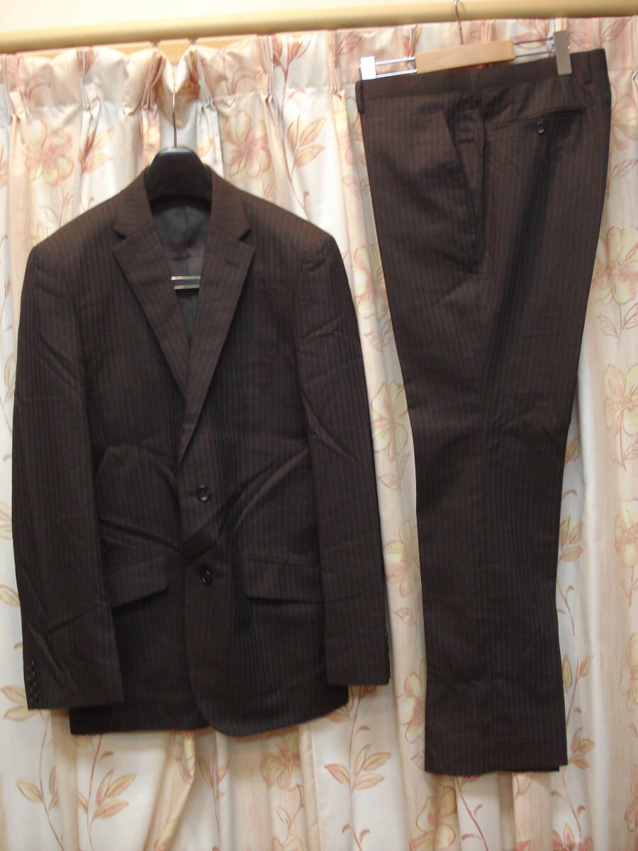 - 送料無料!美品!★秋・冬もの!COMME CA ISM!Lサイズ!とても深く濃いこげ茶色にストライプ柄入り!ウェスト:88cm!シングルスーツ!★