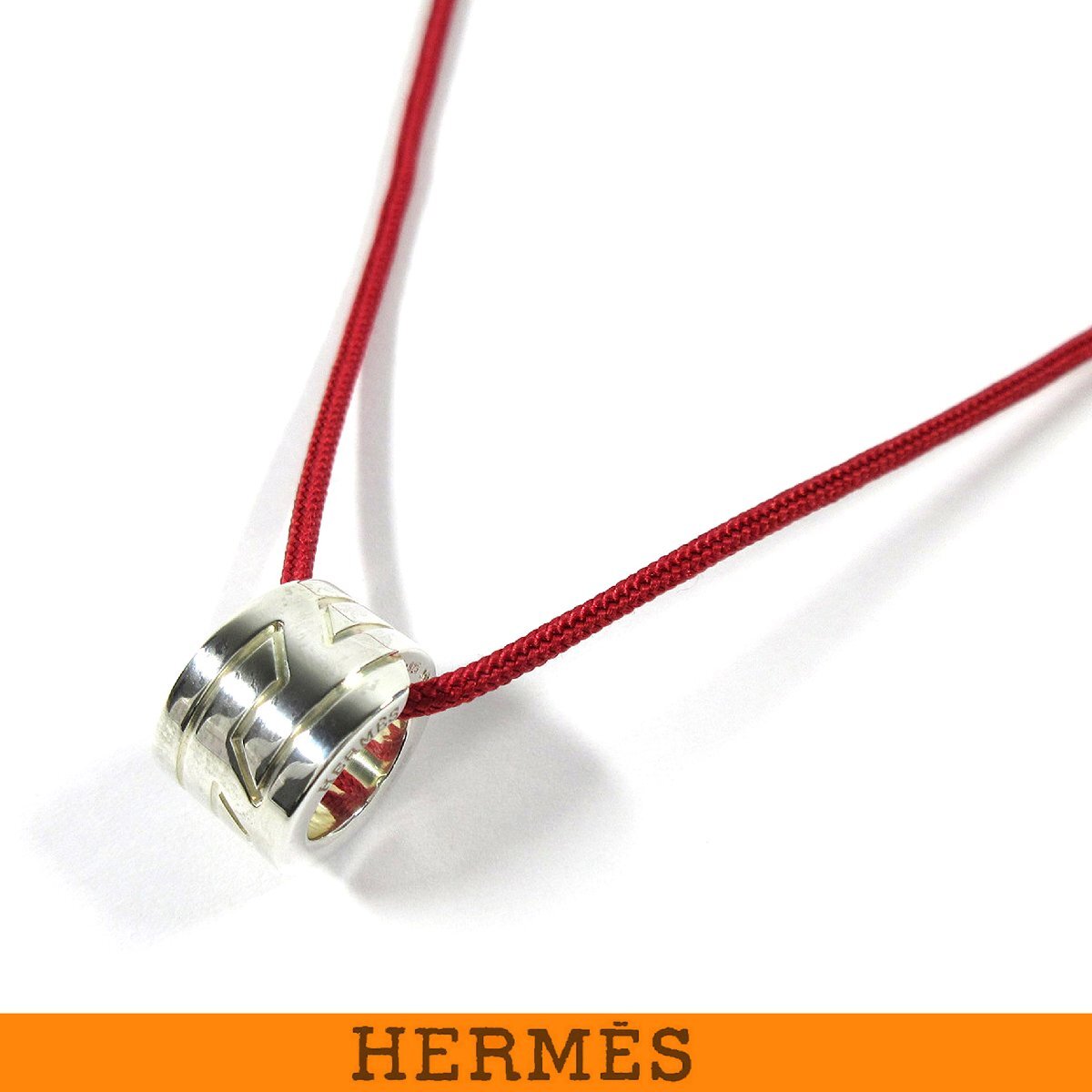 - 2 エルメス イタリーク Hロゴリング シルバー ペンダント ネックレス 925 レッドコード 保存袋 箱付 H8