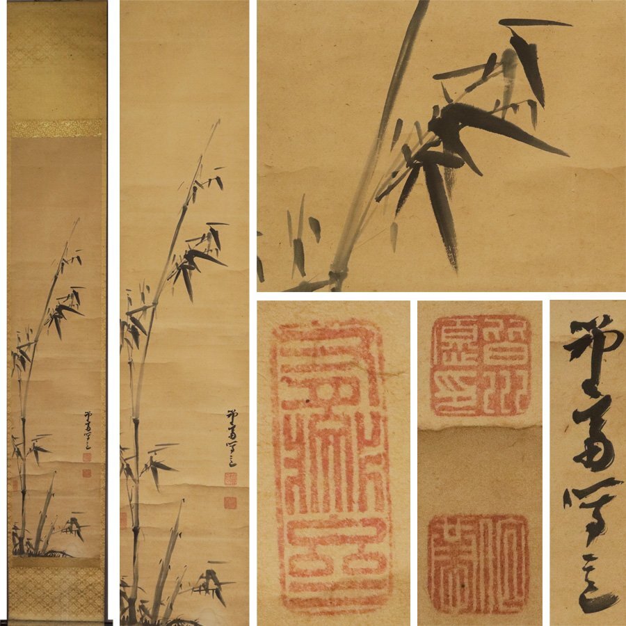 - 《源》【即決・送料無料】江戸期・古画 皆川淇園 自筆 竹図/軸装