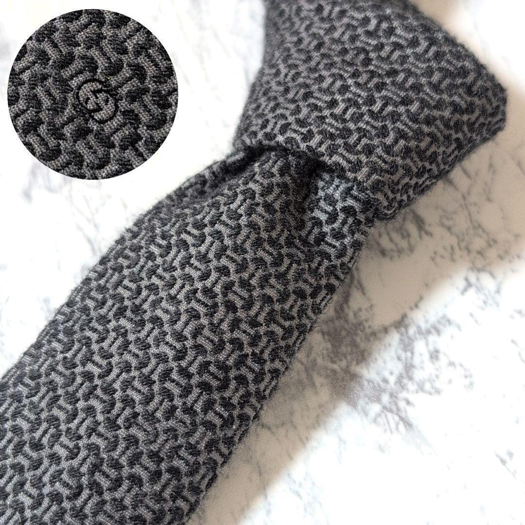 - 【極美品】GUCCI グッチ ネクタイ ジャガード カシミヤ混 シルク インターロッキング