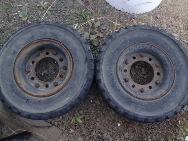 - □L592 フォークリフト ノーパンク 6穴 DUNLOP TRUKUSH POWER LIFTER 5.00-8 CUSHION FB 2本 ホイール付き