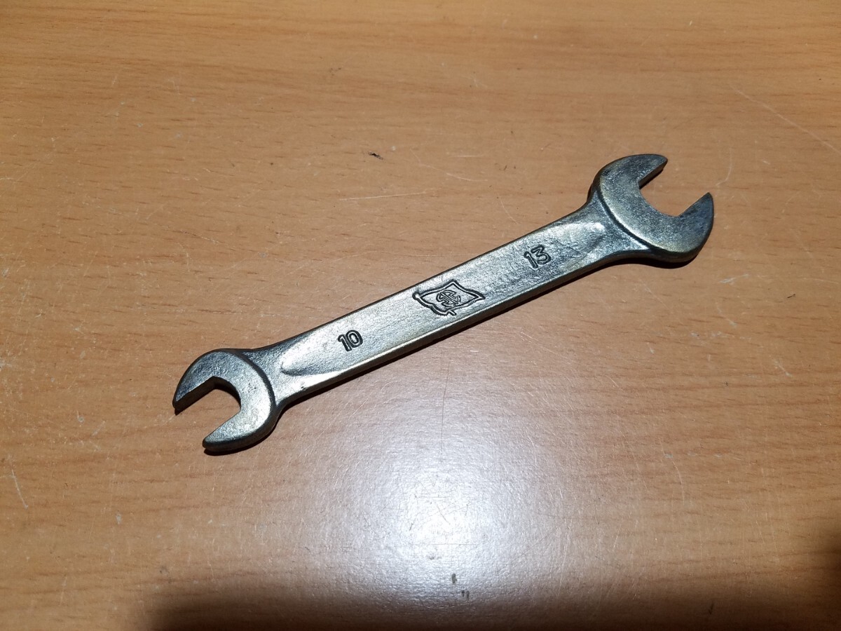 > 281-1 Kawasaki 純正 スパナ 10-13 中古品 フライング リバーマーク カワサキ モータース 旧車 昭和レトロ 川崎重工業 車載工具