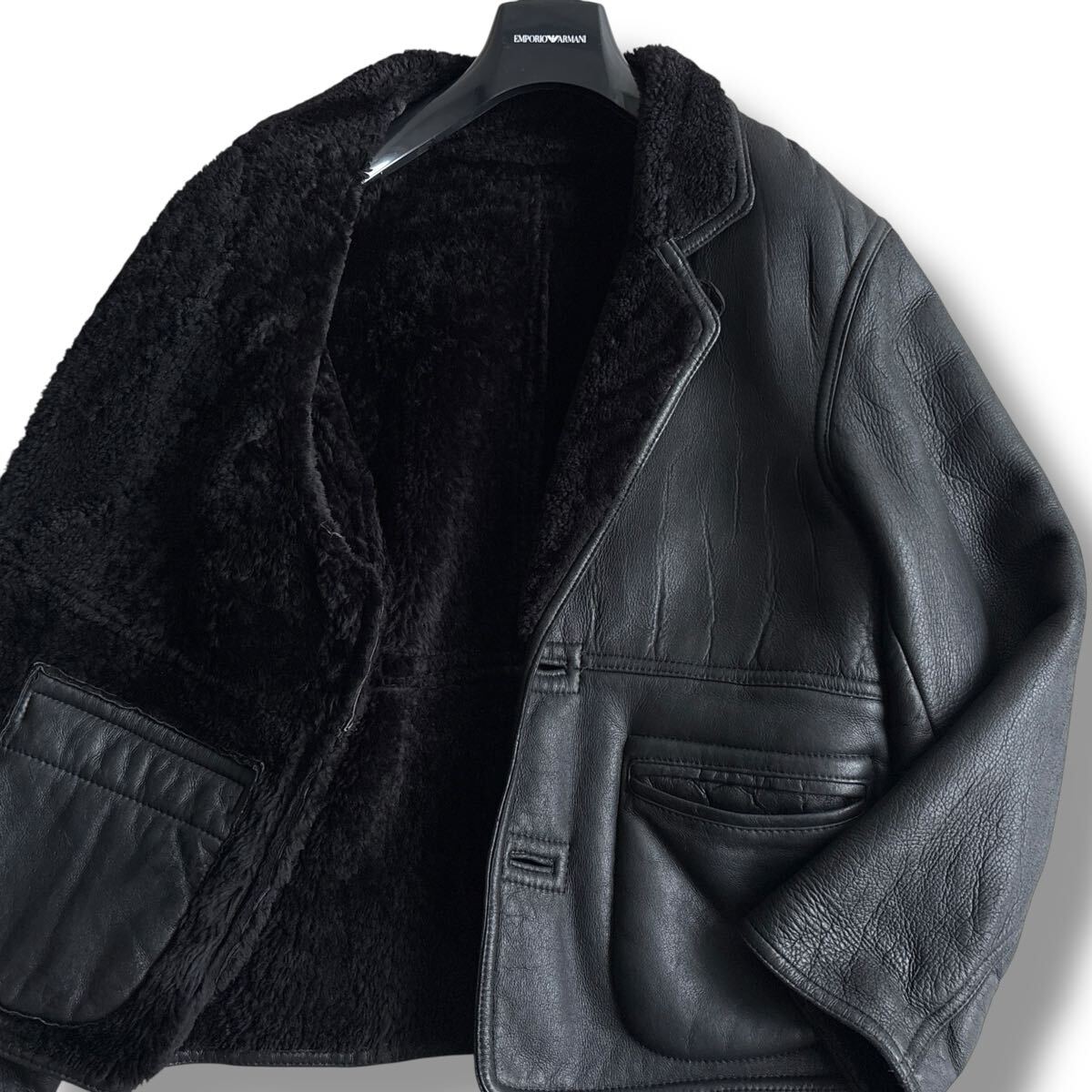 - 美品■ONBU de DACCO【L相当】本革 羊革 ムートンジャケット コート ブラック 黒 90's ヴィンテージ アーカイブ