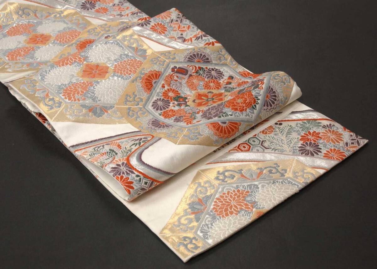 - ☆袋帯☆豪華 唐織「二拾四金箔 能衣花鳥文」 六通柄 正絹☆