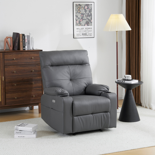 - リクライニングソファー 電動 リクライニングソファ 振動機能付き オットマン一体型 1人掛け USBポート付き 電動ソファ 【グレー 】