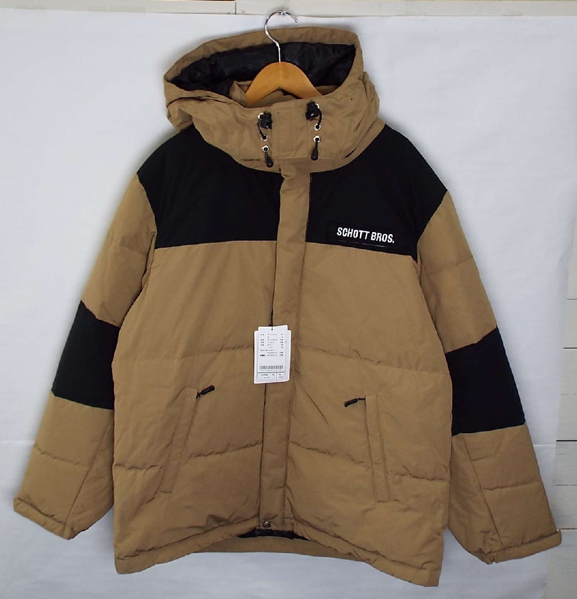 > T3846[ほぼ未使用]Schott/ショット 2トーン ダウンジャケット ダウンパーカー 3122069 ベージュ XLサイズ タグ付