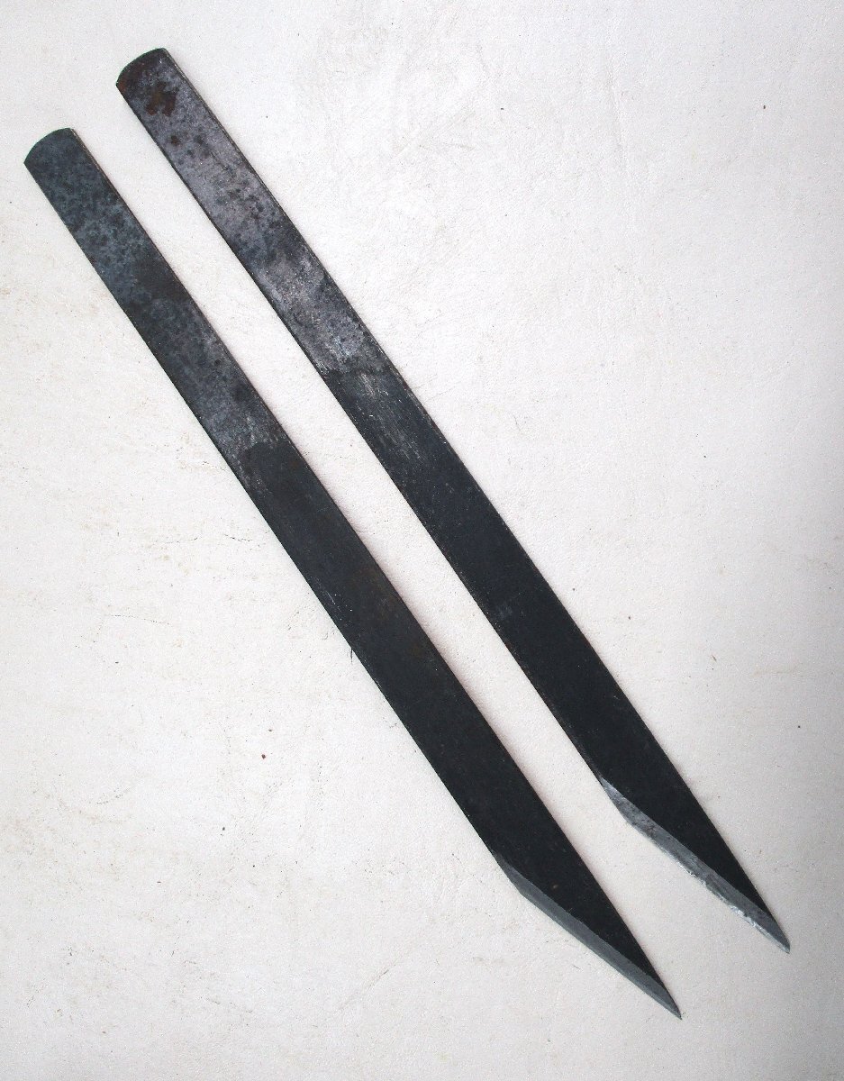 > ★ 97591 おけや 小刀 2本組 切出しナイフ 全長210mm 刃巾12mmx厚さ1.5mm 長期在庫品の為、サビ有 未使用 ★