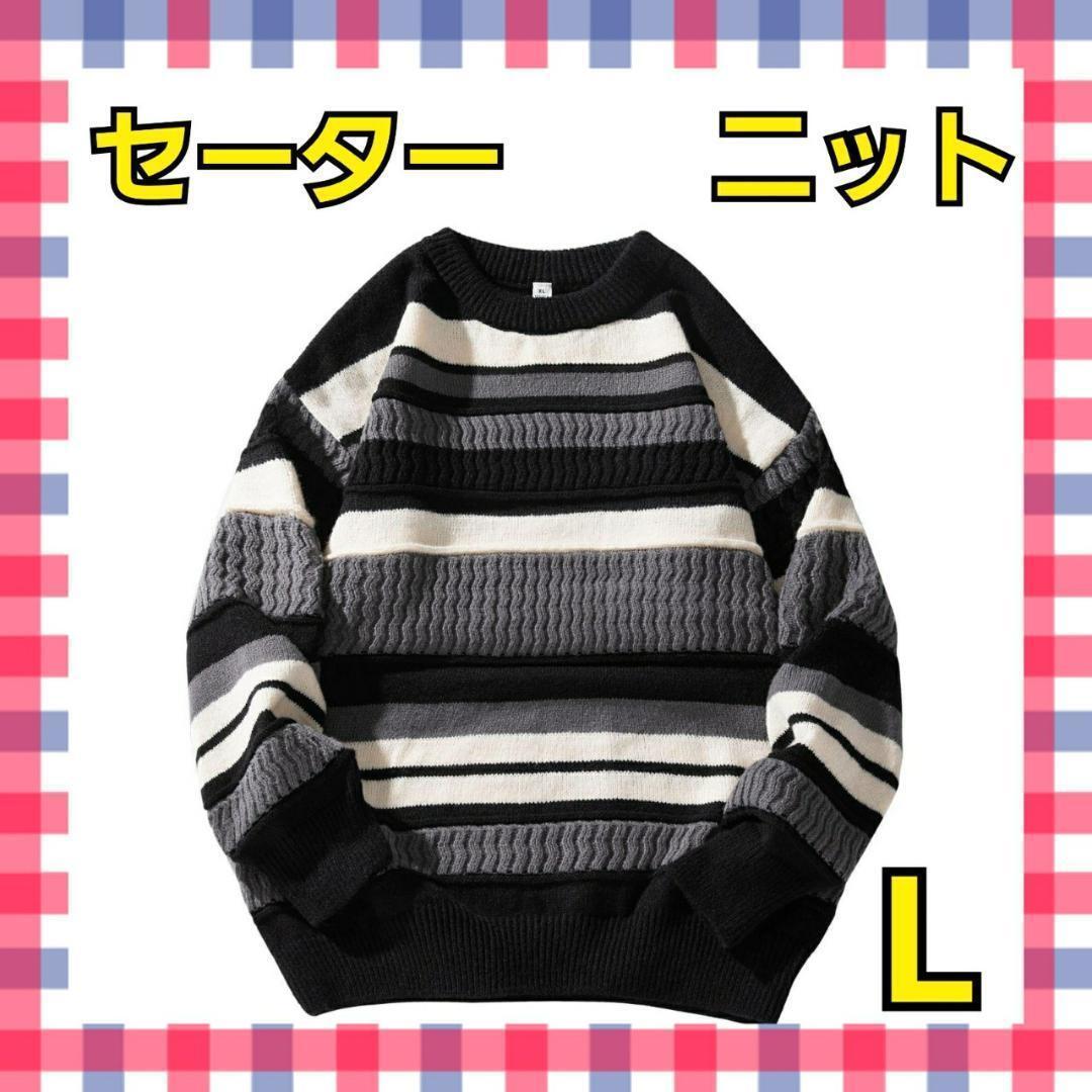 - セーター Lサイズ ニット 男女兼用 長袖 ストライプ ANGEL CITIZ