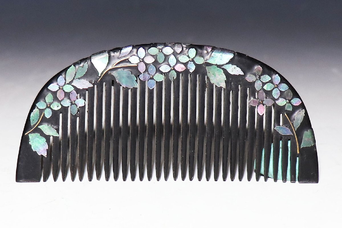 - 【桃】アンティーク髪飾り:青貝螺鈿草花図櫛
