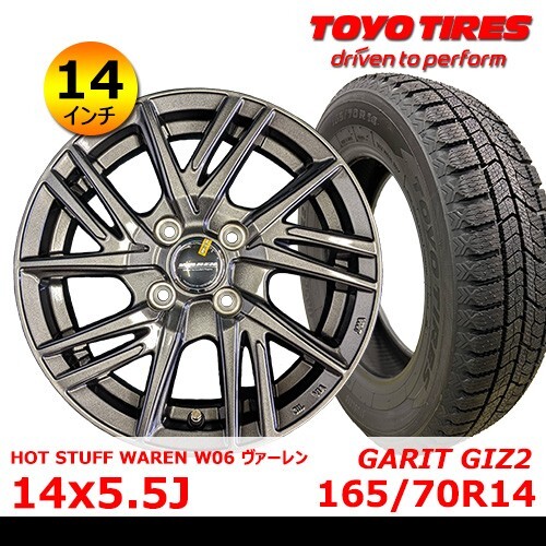 - 送料無料 新品 タイヤ&ホイール 14【HOT STUFF WAREN W06 ヴァーレン 14x5.5J +45 100x4】【トーヨーOBSERVE GIZ2 165/70R14】WHOT-24