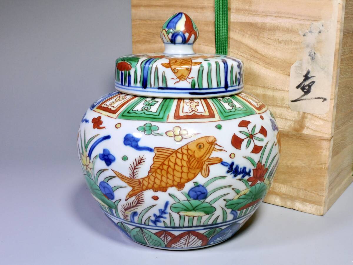 - 明時代 五彩魚藻文壷 大明嘉靖年製在銘 箱付 明 (九州蔵家依頼品⑦)