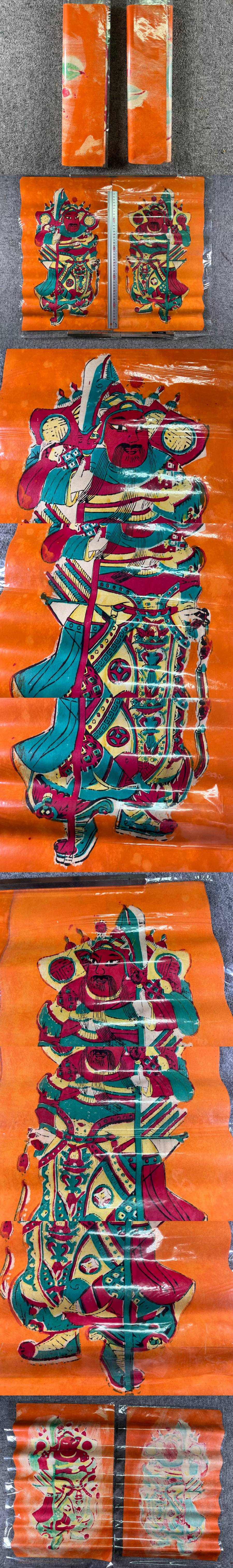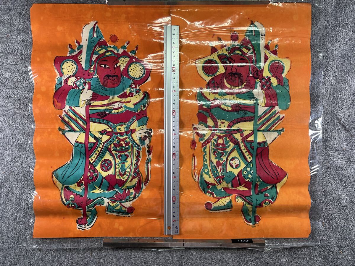 - 木版年画2枚、民国頃木版色刷、保存良、門神図、和本唐本絵画楊柳青蘇州 版画中国