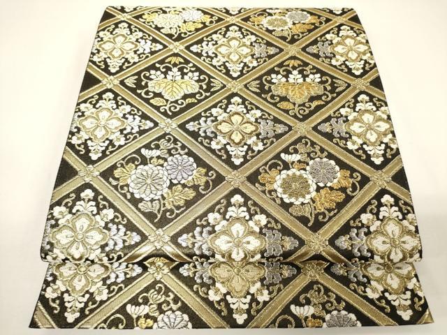 - 平和屋着物▼六通柄袋帯 唐織 花唐草菱文 黒地 金銀糸 正絹 逸品 未使用 CAAY4112ak