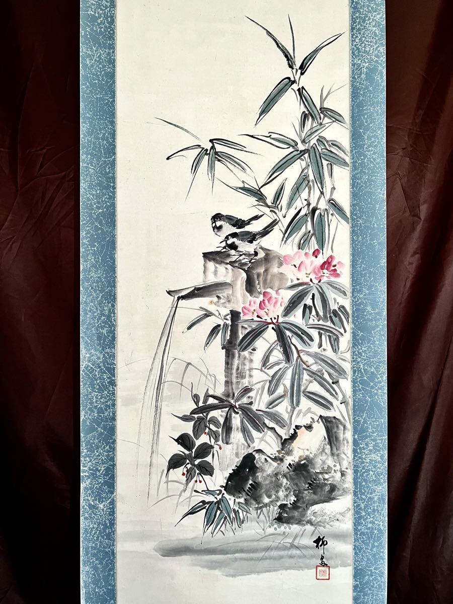 - 【真作】【S8】島崎柳塢「石楠花」紙本 肉筆 花鳥図 鳥獣 シャクナゲ 小禽 絵画 掛軸 明治-昭和時代の日本画家 師: 松本楓湖 川端玉章