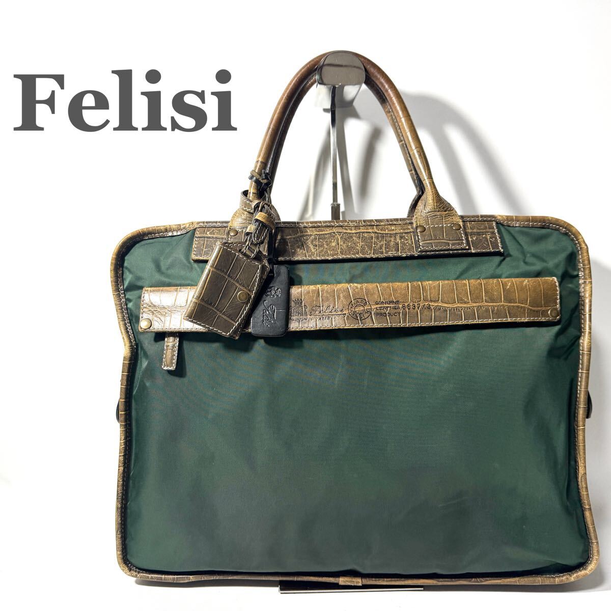 > Felisi フェリージ ビジネスバッグ ブリーフケース 書類カバン A4 レザー ナイロン ブラウン カーキ チャーム有り クロコ型押し 8637/3