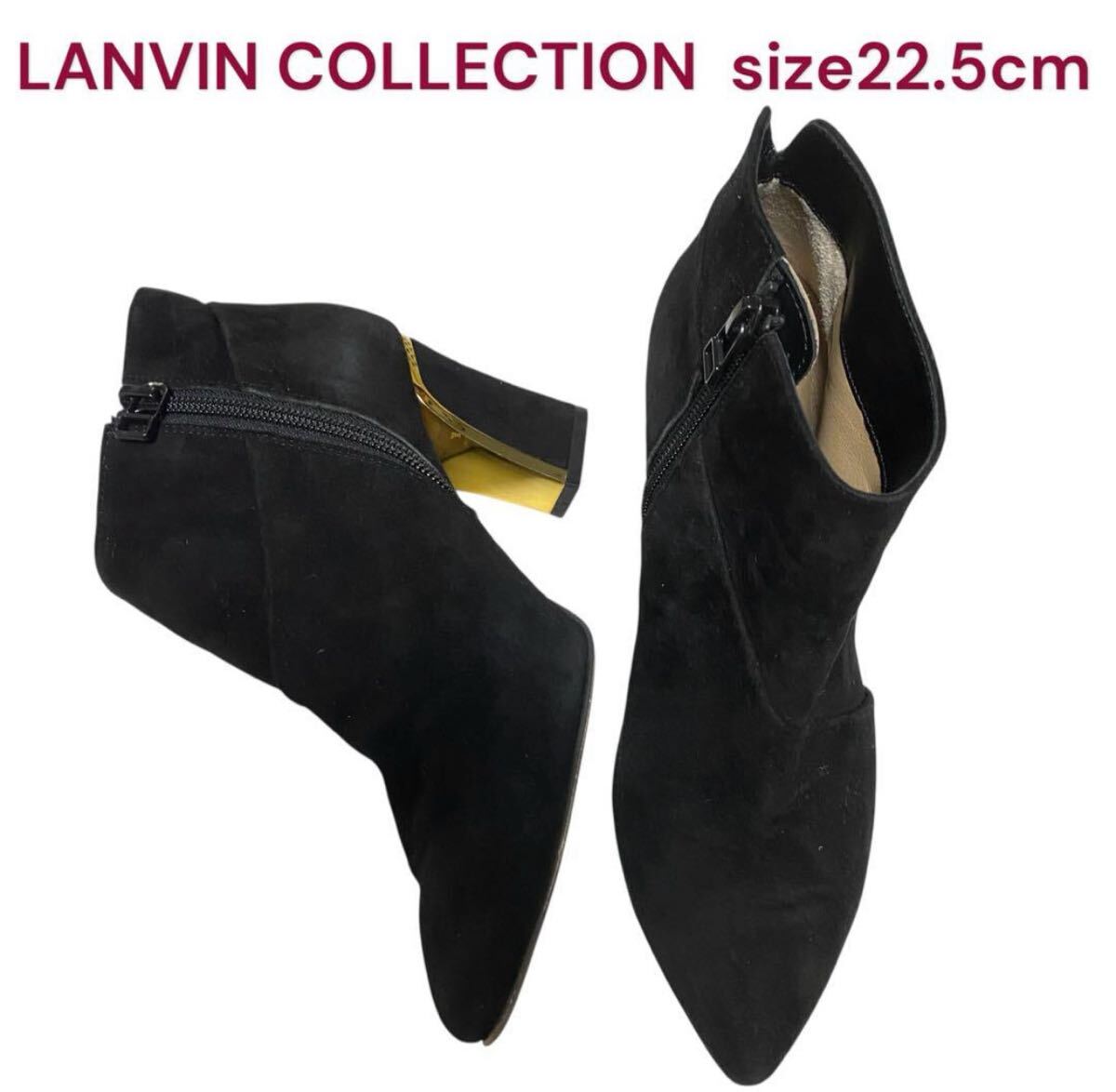 - 美品 ランバン コレクション スエード ショートブーツ 22.5cm ブラック LANVIN COLLECTION 22.5 ブーツ 黒 ブラック