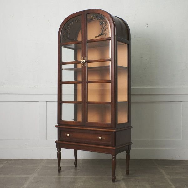 - IZ95025F★飛騨産業 キツツキ キュリオケース 3面ガラス 照明付き ビーチ 飾り棚 引き出し 食器棚 ショーケース カップボード クラシック