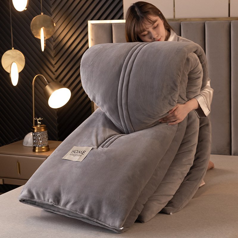 - ボア掛け布団 掛ふとん 保温 あったか フランネル 暖かい ふわふわ もこもこ 柔らかい 吸湿 防寒 グレー 200cmx230cm 冬用重量約5KG