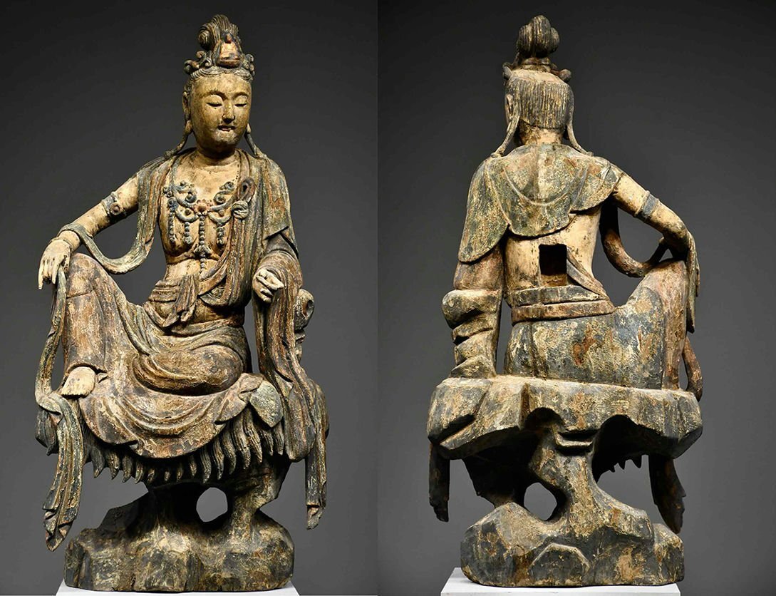 - ▼渡鶴羽▼P0900 宋代 楠木木彫自在観音坐像 楠木細工彫刻★仏教古美術★仏像★細密細工★廃寺旧蔵★廃寺買出品