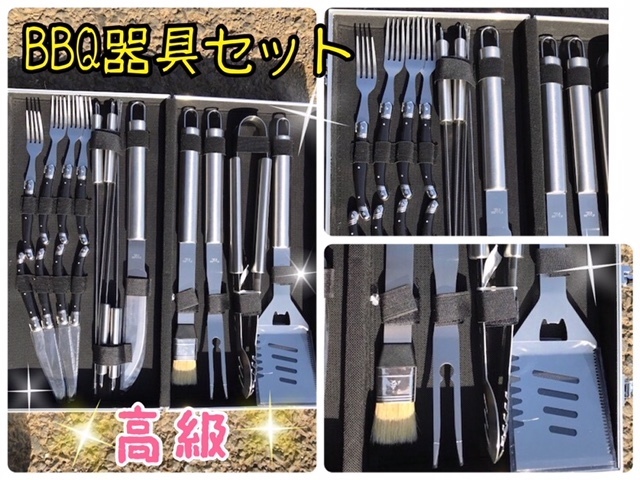 > 最新型 BBQ調理器具セット バーベキュー 17点セット バーベキューセット まとめ買い 持ち運びやすい アタッシュケース 新品 y