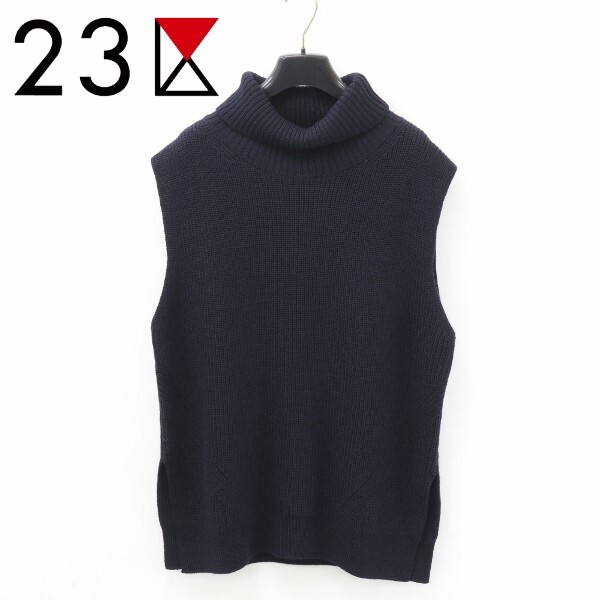 > 【KA275】美品◆23区 サイドスリット オフタートルネック ニット ベスト ノースリーブ トップス 紺 ネイビー 38