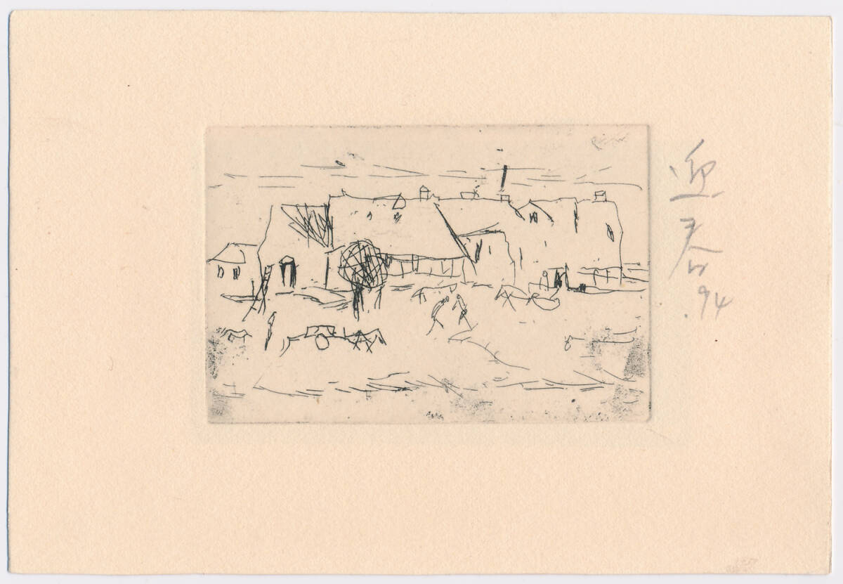 - ■堀井英男 銅版年賀葉書/平成6年、自筆メッセージ入り、版画家、画家、真作