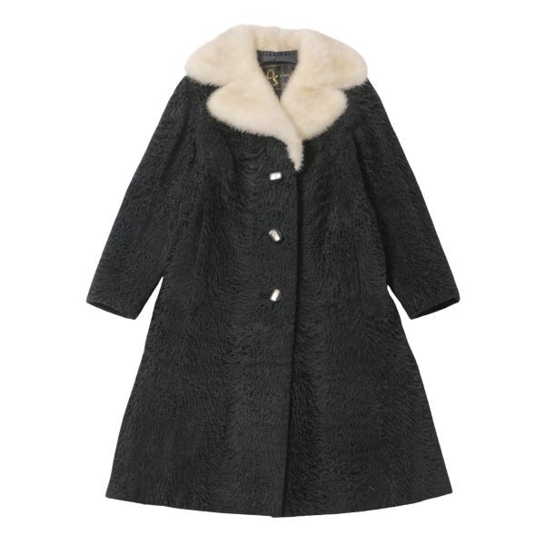 - GS3063◇OS VISION カラクールラム × 逆毛ミンク ファーコート 毛皮コート ミドル丈 ブラック×アイボリー系 S相当
