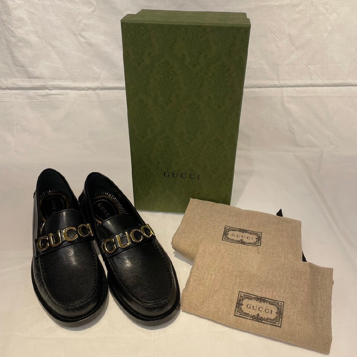 GUCCI グッチ ロゴ ビットローファー ブラック×ゴールド金具 39 サイズ:39 (アウトソール27.5cm/幅10cm/ヒール2.5cm未使用 気になる点などお気軽にお問い合わせ下さいませ♪