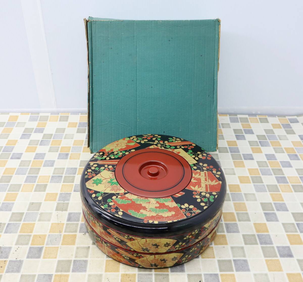 △お正月 おせちにも |尺皿付二段 寿司桶 和風 花柄| 重箱 丸型 盛皿 小皿付き | 肩面 ■O6839の出品です!