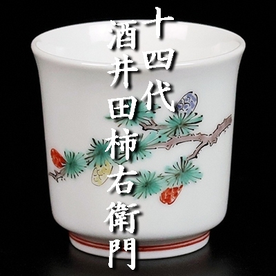 - 【 十四代酒井田柿右衛門 】本人作 濁手松文ぐい呑 本物保証