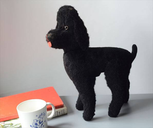 > ドイツから 大きな黒い犬 プードル ぬいぐるみ オブジェ Steiffを彷彿 フィギュア ヴィンテージ アンティーク_ig4657