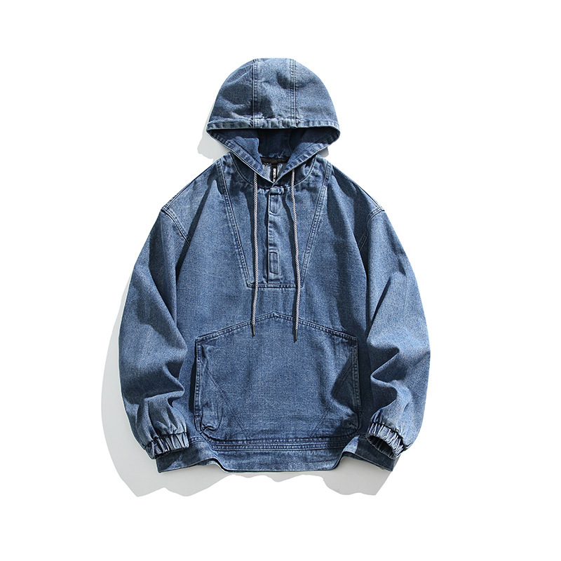 > ヘヴィデニム ウォッシュカラー デニム プルオーバー フーディ インディゴ パーカー サイズM〜2XL M65 大きいサイズ ヴィンテージ