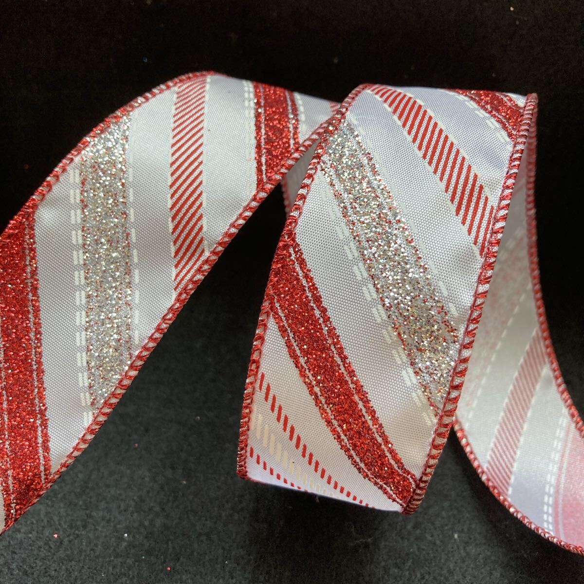 - リボン切り売り 1.5m 約3.8cm幅 クリスマスリボン 赤と白のストライプ リボン