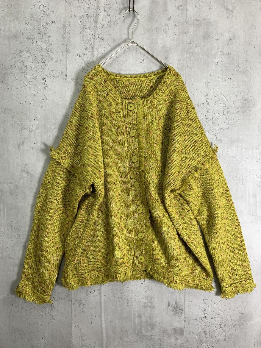 - antiqua アンティカ pn-00328 フリンジ付き メランジニット カーディガン sizeF/イエロー ◆■ ☆ fja8 レディース
