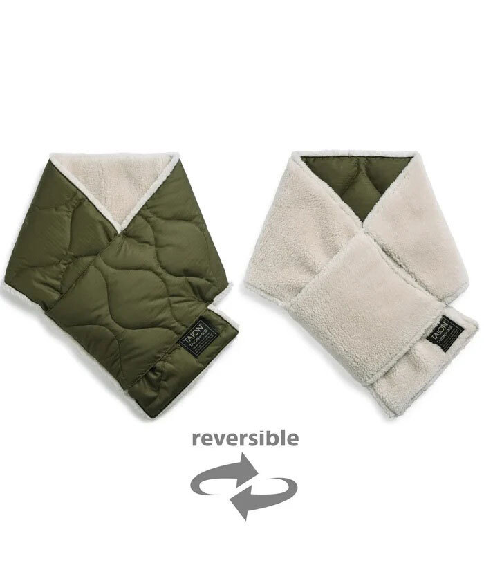 > <ダークオリーブ×クリーム>タイオン TAION ダウンマフラー リバーシブル ミリタリー マフラー レディース TAION-R201ML