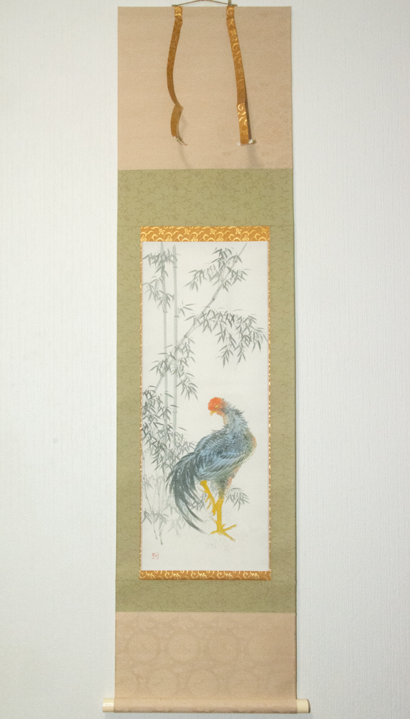 - 【模写】墨心会主宰 世良正 不墨 軍鶏図 日本現代美術展大賞 掛軸 共箱 日本画