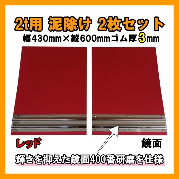 > 2t用 EVA泥除け レッド 鏡面ウエイト(400番研磨) 二山折り 幅430mm×縦600mm×ゴム厚3mm 2枚セット