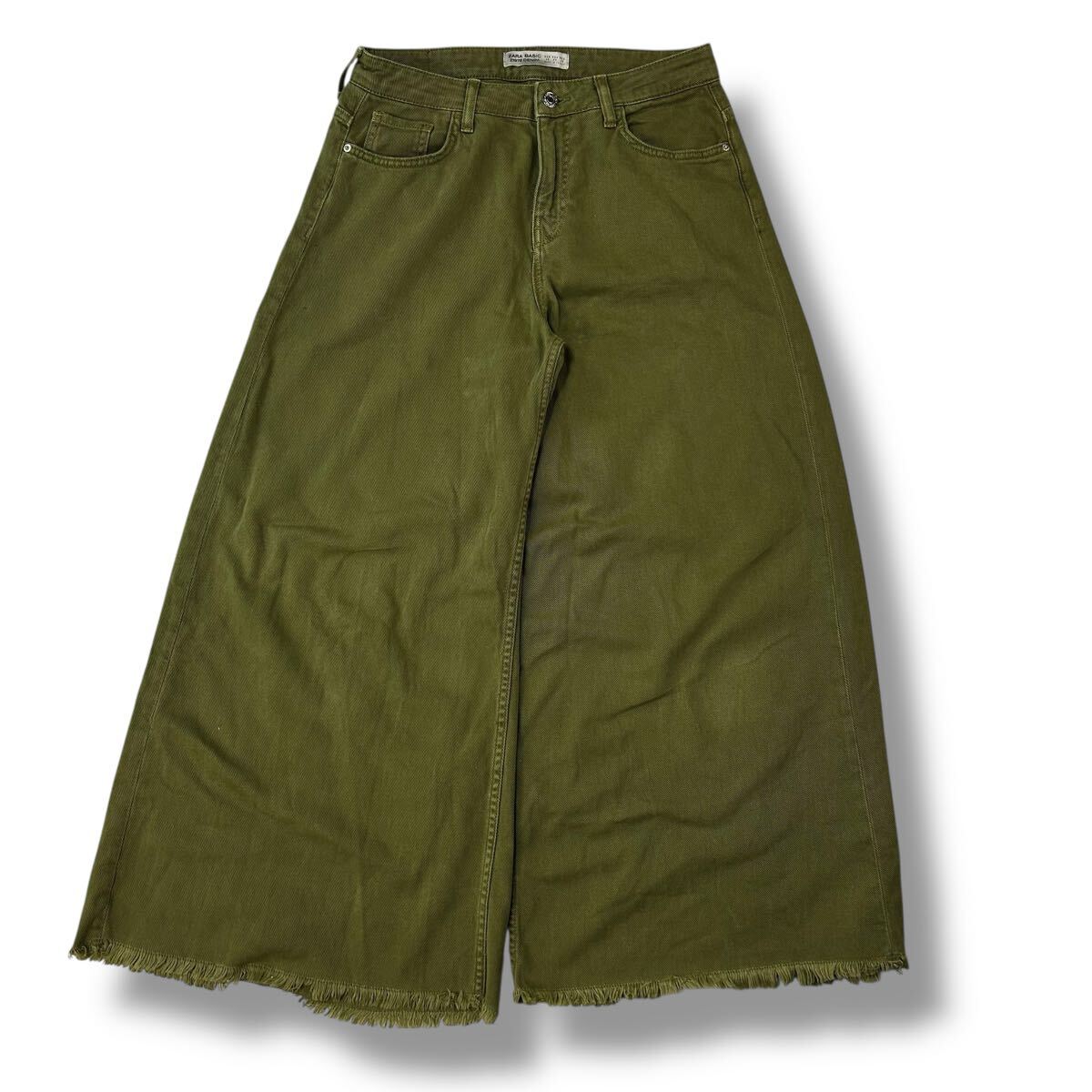 - 1014MS ZARA ザラ ワイドデニムパンツ カットオブデニム バギージーンズ ワイドパンツ ワイドシルエット ワイドデニム baggy カーキ